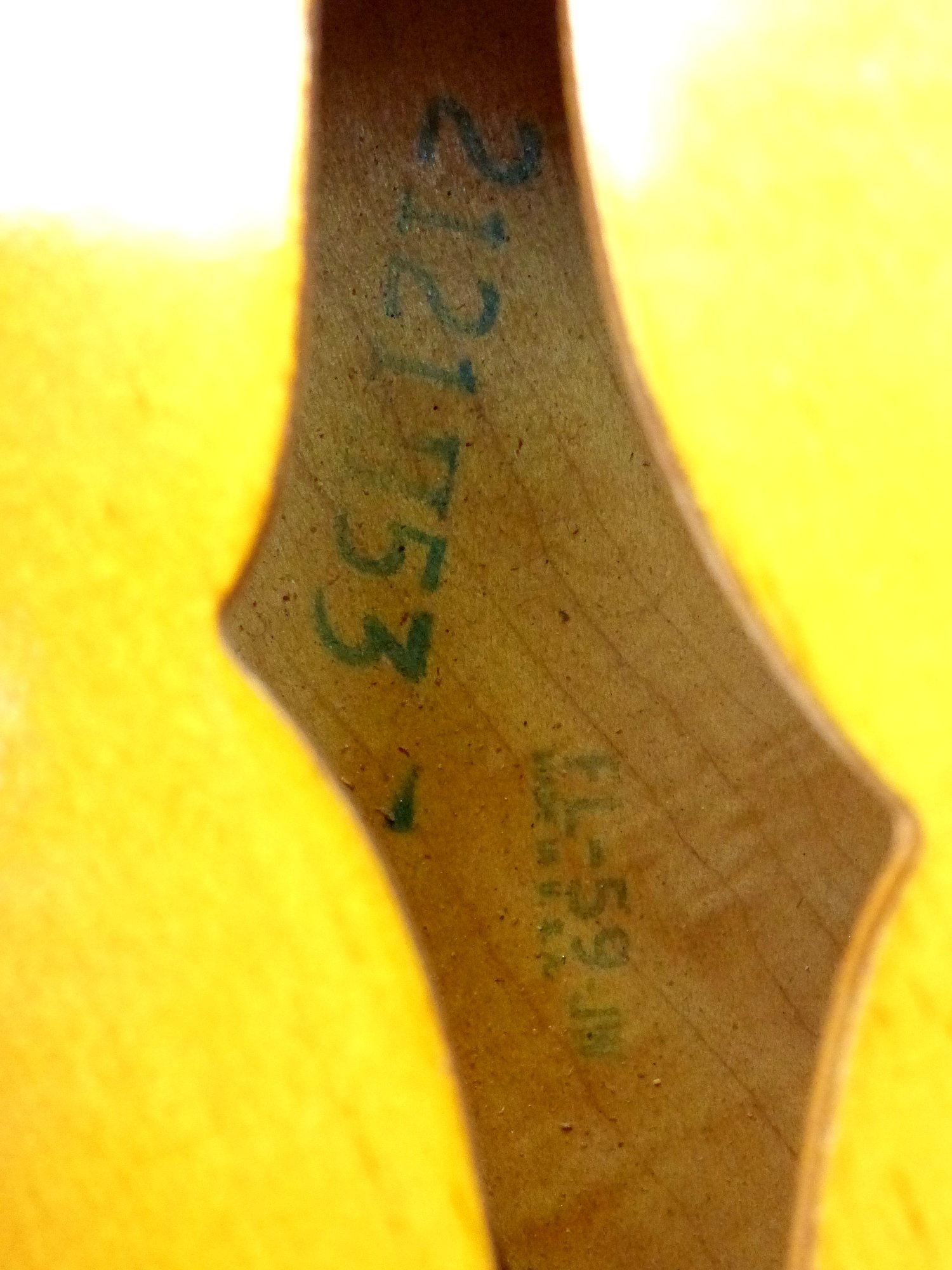 決してプロ・ミュージシャンがステージで使うギターでは無い、当時の普通のアメリカの家庭で部屋の片隅に置いてあったようなギターです。